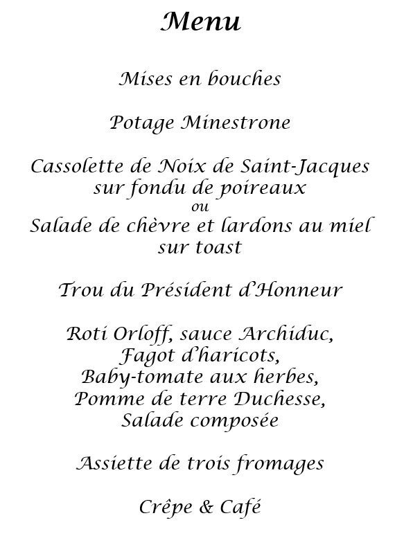 Ce menu a été préparé et servi par Traiteur Joelle de Péruwelz